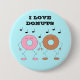 Un donut de chocolate y un donut de fresa están bailando un momento delicioso. Todos deberíamos bailar más. Puede alterar el color de fondo y hacer varias modificaciones a las letras de este divertido botón. ¡Personalizable. Trabajo original; © Sharon Lee Hudson. Todos Los Derechos Reservados.