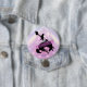 Botón de despedida de soltera de disco humorístico diseñado para el equipo de la novia. En hermosos colores gradientes desde lavanda hasta periwinkle y rosa con una bola de discoteca funky, silueta de vaquero domando un bronco, fuente retro glamorosa "Bride 'em Cowboy" (el equivalente country de 'ponle un anillo') y un fondo de luces de discoteca. Busque ID928 para ver otros productos de esta colección de moda.