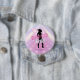 Elegante diseño personalizado de botón de despedida de soltera disco para el equipo de la novia. En hermosos colores gradientes desde lavanda hasta periwinkle y rosa con una bola de discoteca funky, silueta de vaquera, fuente retro glamorosa "Disco Darlin'" y fondo de luces de discoteca. Este diseño elegante y sofisticado se adapta fácilmente a cualquier cena especial y/o evento de baile. Busque ID928 para ver otros productos de esta colección de moda.