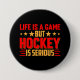 La vida es un juego pero el hockey es un botón serio de hockey de texto rojo y oro.