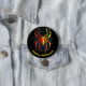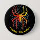 Espeluznante araña aterradora en una telaraña botón de pasador Happy Halloween