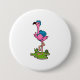 Chapa Redonda De 7 Cm Flamingo como excursionista con mochila