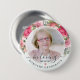 El botón perfecto de homenaje para que amigos y familiares se pongan en un funeral o servicio conmemorativo con una imagen de su ser querido y las palabras "en la memoria amorosa" y su nombre. El diseño presenta un diseño floral de acuarela rosa y un guión de caligrafía.