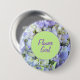 El fondo de este botón redondo es una foto hermosa del hydrangea púrpura. Un círculo verde claro en el centro ofrece el texto adaptable que lee: Florista. Este botón es perfecto para casar a los fiestas del ensayo o del bachelorette.