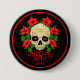 Chapa Redonda De 7 Cm Halloween año 20xx Skull Rojo Hibiscus Negro