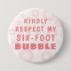 Recuerden con suavidad a otros sobre el distanciamiento social recomendado de 1,5 metros de distancia durante la pandemia del COVID-19 (virus de la corona) con este alegre dicho RESPETANDO AMABLEMENTE MI BURBUJA DE SEIS PIES en chicle rosa con burbujas rosas. Póngase en contacto con el diseñador si desea modificar este diseño o en otro producto.
