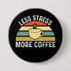 A cualquiera que le guste el café y sepa el efecto que tiene en su nivel de estrés le encantará este diseño de café de estilo retro en bolsas, tazas, pegatinas, camisetas, almohadas y más con una taza de café humeante con un texto que diga Menos estrés más café.
