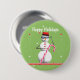 Botón con mi diseño original de un lindo muñeco de nieve usando gafas de sol, sosteniendo un bastón de caramelo y dándole propina a su gorra mientras le deseaba a todos "Felices Fiestas".