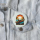 Un botón atrevido y juguetón con un esqueleto montando una tabla de surf en una ola de océano que se estremece, ambientado en un vibrante fondo de atardecer con la frase "Nunca mejor". Esta obra de arte irónica y despreocupada combina la cultura del surf con humor negro, perfecta para los amantes de la playa, los aficionados al estilo alternativo y los que adoptan la vida con un cariz rebelde y alegre.