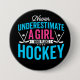 Chapa Redonda De 7 Cm Nunca subestimes el hockey Chica