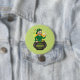 Botón con un Ilustracion de un leprechaun sonriente vestido con un traje verde, corbata de arco y un gorra de bolos sentados dentro de una olla de oro y sosteniendo una pinta de cerveza, con un arco iris amarillo, verde y naranja al fondo. La imagen se coloca sobre un fondo verde claro y sin fisuras con rocas de champú. ¡Un diseño perfecto para celebrar el Día de San Patricio!