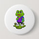 Chapa Redonda De 7 Cm Rana como excursionista con mochila