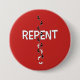 Las huellas descendentes se vuelven hacia arriba y forman una cruz con la palabra REPENT.