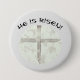 Celebra Pascua con este único botón con el tipo de letra que HE IS RISEN es decorativo. Adornado con una cruz de uñas.