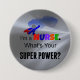 Humor de enfermería (gris de acero con efectos especiales). "Soy enfermera. ¿Cuál es tu superpoder?" chapa.