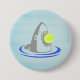 A los aficionados a los deportes de racquet de todas las edades les encantará este tiburón personalizado gracioso con una pelota de tenis en la boca. Los botones son excelentes para que los equipos agreguen aire a las bolsas de racquet, o como favores de fiesta para los cumpleaños temáticos del tenis.