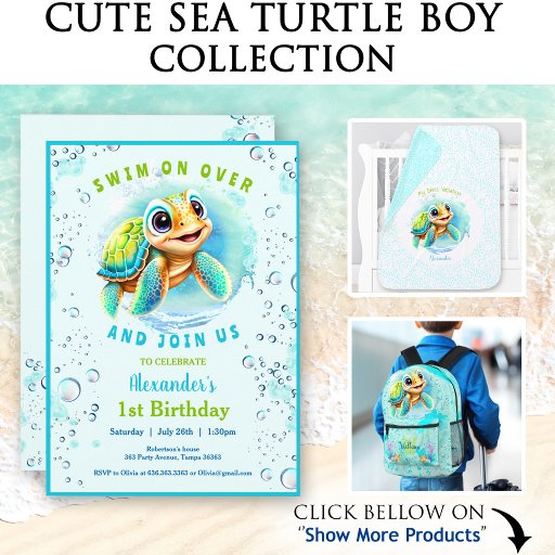 Cute Sea Turtle BoyDiseñado por Kate Eden
