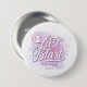 Elegante diseño personalizado de botón de Despedida de Soltera Disco para la novia en hermosos colores gradientes desde lavanda hasta periwinkle y rosa con una bola de discoteca funky, fuente retro glamorosa y luces de discoteca brillantes, fondo de acuarela. Este diseño sofisticado y elegante se adapta fácilmente a cualquier cena especial y/o evento de baile. Busque ID928 para ver otros productos de esta colección de moda.