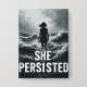 Impresión de paredes blancas y negras impactante con la silueta de una mujer fuerte en medio de olas turbulentas. Con el pelo soplando en el viento y la postura en posición vertical, enfrenta la tormenta con una determinación inquebrantable. La tipografía audaz debajo de ella dice: "ELLA PERSISTIÓ", simbolizando fuerza, resistencia y coraje frente a la adversidad. El dramático paisaje marino enfatiza el poder de la fuerza interior y la resiliencia, haciendo de este artículo una declaración audaz para el empoderamiento.