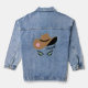 Una chaqueta de denim perfecta para una vaquera, junto con un gorra de vaquero marrón adornado con una flor rosa y acentos verdes de ojos de gato. Personalizar el texto 'Cowgal' con tu nombre o elige mantenerlo tal cual.
