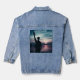 Esta imagen representa la silueta de un hombre parado en aguas poco profundas con el brazo levantado hacia el cielo. El fondo muestra una puesta de sol serena, con un horizonte que mezcla tonos rosas, naranjas y azul profundo. El agua es tranquila y refleja los colores del cielo, creando un ambiente tranquilo y de ensueño.