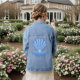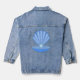 Esta impresionante chaqueta de denim presenta una concha azul bonito abierta con una perla azul pálido brillante sentada en el interior sobre un fondo brillante. Un gran diseño para celebrar a un bebé.