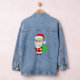Santa con un largo abrigo con su bolsa de juguetes y golosinas.