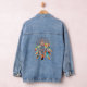 En la parte trasera de esta chaqueta de denim se encuentra una imagen única de un dreamcatcher rústico con coloridas plumas estilo boho.
