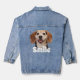 Esta bonita chaqueta de denim muestra una cara de perro con beagle (JoDog the Smiling Beagle) con una gran sonrisa, y la palabra "Sonrisa" en la tipografía moderna, ¡y seguro que da a los que te siguen su propia alegría! Hay tanta ansiedad y estrés en el mundo hoy en día, que es agradable recordar que hay muchas cosas por las que sonreír — como este pequeño perro gracioso! Perfecto para el propietario mascota, amante de los beagles o amante de los animales. Fotografía de JoDog the Smiling Beagle ©T.K. Goforth, todos los derechos reservados.
