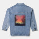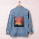 Escena de campo detrás de una chaqueta de jean. Hermosa silueta de 2 ciervos al atardecer. Una bonita decoración para una chaqueta. Espero que disfrutes de tu nueva chaqueta.