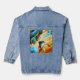 This denim jacket features original Cup_of_Calm art — a vibrant, emotional coffee scene that feels alive on fabric.
