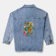 Un dragón chino verde con un pez koi naranja con flores de loto y flores de cerezo en un fondo de azul oscuro.
