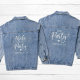 ¡Celebra con estilo con esta Chaqueta Vaquera para Despedida de Soltera en Nashville! Perfecta para la fiesta de la novia y sus amigas, esta chaqueta de jeans de moda presenta "La Fiesta" en una elegante tipografía moderna blanca con una ubicación personalizable debajo — ideal para fines de semana de chicas, despedidas de soltera en destino o celebraciones previas a la boda. Ya sea que estés celebrando en Nashville, Las Vegas o Charleston, es el recuerdo perfecto para la novia y sus mejores amigas. Combínala con tus vestidos, leggings o conjuntos de despedida de soltera favoritos para un look listo para la foto que es chic y sin esfuerzo. Está disponible una chaqueta coordinada "Esposa de la Fiesta" para la novia.