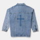Elegante cruz azul Sabiduría Espiritual Proverbio Moderno Denim Jacket, puedes reemplazarlo con tu propio proverbio favorito
