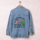 La graciosa chaqueta de mujer con un denim dice ASAMBLEADA EN EE.UU. USANDO PARTES BRASILEÑAS. Presenta banderas de Estados Unidos de América y de Brasil. Es bueno para reírse de las reuniones familiares, clubes y grupos de viajes. Úsalo para celebrar a EEUU y las fiestas de Brasil con humor.