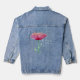 Esta Chaqueta de Denim Floral color de agua rosada presenta una amapola acuarela rosa y una cita de Ralph Waldo Emerson "risas de tierra en flores".