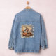 Denim chaqueta con caballo galopando al atardecer. Borde floral. Diseño original. Vea otra chaqueta de jaqueca para denim equino: https://www.zazzle.com/beautiful_white_horse_gold_floral_wreath_denim_jacket-256885727004929090