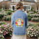Ilustracion colorido con el diseño de texto "Gato suertudo" en japonés y un gato kawaii levantando una mano decorada con fondo retro a rayas.