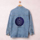 Rótulo Leo Lion Zodiac Diseño Denim Jacket con texto de personalizable para cambiar o borrar. Elija su tamaño en el menú desplegable.