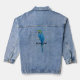 Diseño de Macaw en la parte posterior de esta Chaqueta de Denim con texto de personalizable para cambiar o borrar. Seleccione su tamaño adecuado en el menú desplegable.
