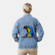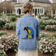 Una vívida obra de arte de loro de macao azul y dorado y el texto Parrot Mom en una fuente divertida. El texto es una plantilla que puede cambiar si lo desea.