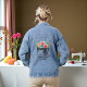 Chaqueta de Denim para la máquina de coser con el artesano trasero con la máquina de coser de color negro vintage y las flores de color rojo verde. Usar la opción de personalizar esta plantilla para cambiar el texto | Utilice la opción personalizar para cambiar el estilo, el tamaño y el color del texto, si es necesario. Vea más productos con este diseño en la colección de abajo.