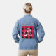 Añada moda rústica a su ropa con esta chaqueta de denim personalizado. Personalizar con su elección de inicial, que se mostrará en el panel cuadrado de la parte posterior. El panel es de color rojo y negro manto de búfalo, con el inicial como letra blanca de mayúscula.