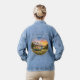 This 1960s inspired van life design features a vintage sunset scene. A painted hippie camper bus is parked in front of a shimmering lake, surrounded by towering mountain peaks and blooming wildflowers. The graphic is printed on the back for a head turning look. Show off your love for the outdoors and add vintage vibes to your outfit with this groovy denim jacket. Made for adventurers, travelers, dreamers, and anyone who feels most alive chasing the next horizon.