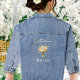 Celebra tu día de boda con estilo rústico con esta encantadora chaqueta de denim floral para la novia. Diseñada con una delicada ilustración de un ramo en estilo acuarela y tipografía elegante, aporta un toque romántico de campo a tu look de novia. Perfecta para bodas rústicas, boho o al aire libre, esta chaqueta se convierte en un hermoso recuerdo para usar mucho después de la celebración. Úsala en tu despedida de soltera o con tu vestido de novia para un ambiente fresco en la recepción.
