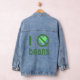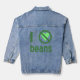 La chaqueta de denim de las mujeres dice "Odio los frijoles". El diseño usa letras verdes, un corazón verde y el cartel internacional "NO" para leer "Odio los frijoles". Para aquellos que no los "animan". La chaqueta humorística es un regalo divertido para cualquier ocasión.