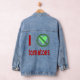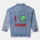 Odio los tomates de la chaqueta de denim femenina. El diseño humorístico usa letras rojas, un corazón verde y el cartel internacional "NO" para leer "Odio los tomates". Para los que no "corazón" aman las manzanas.