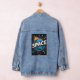 La imagen muestra una representación estilizada y geométrica de un planeta con la palabra "ESPACIO" audazmente superpuesta sobre él. El planeta se representa con una superficie azul y facética y una fuerte explosión naranja que emana de su núcleo. El conjunto es dinámico y colorido, con una estética retro-futurista.