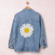 Add a touch of bold softness to your style with this denim jacket featuring a large daisy on the back. A symbol of simplicity and joy, the oversized floral design brings a fresh and carefree vibe — perfect for those who love to bloom wherever they go.