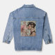 Una pareja de vapor besando al ilustracion en la espalda de una chaqueta de denim para mujeres.